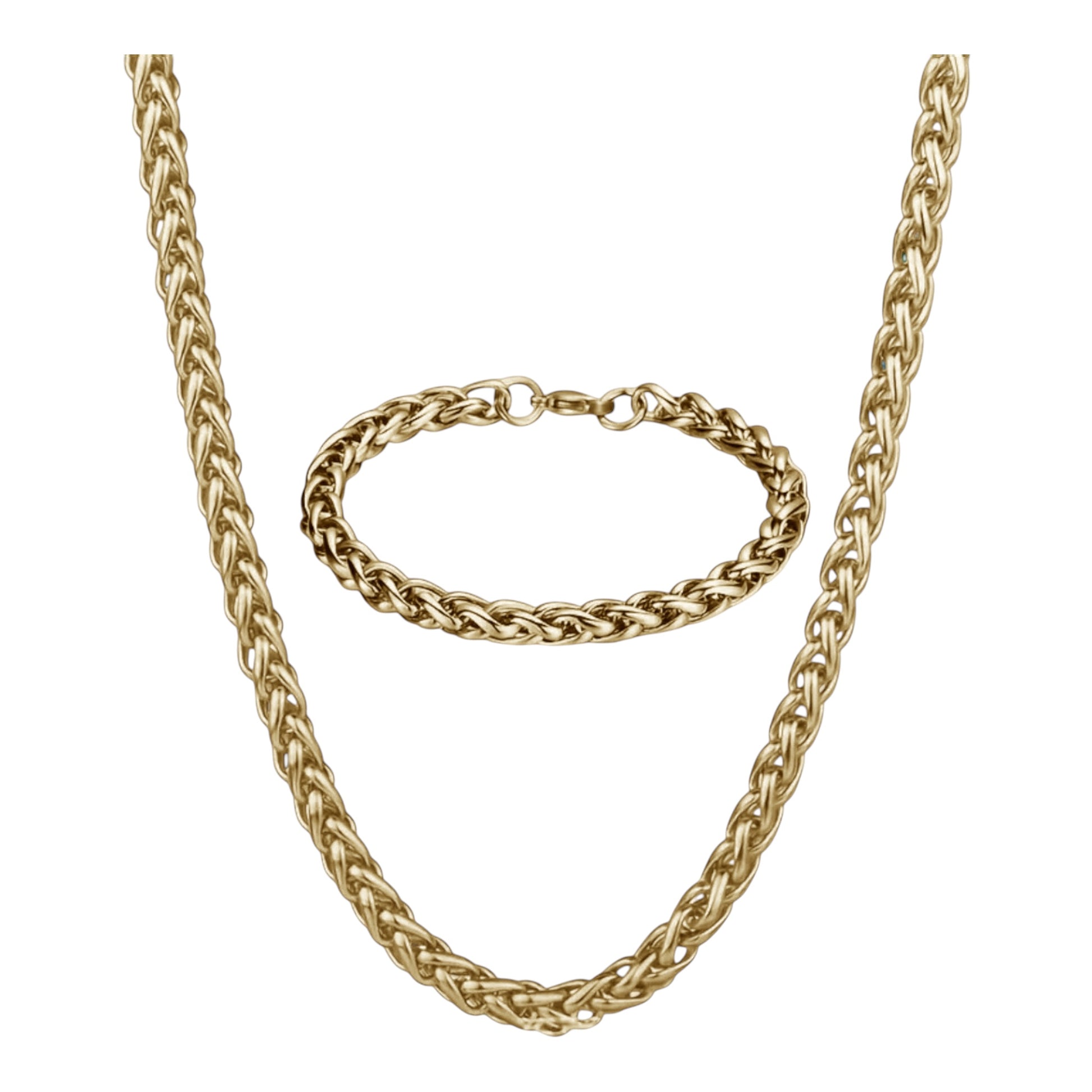 Men's Gold Stainless Steel Necklace & Bracelet Set